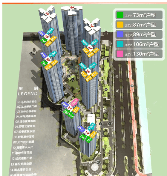 在售户型涵盖 73-130㎡,全系全南向设计,至少四开间朝南,采光通风俱佳,使用率高达 130%(阳台、飘窗、花池多处赠送,阳台率 20%)。73㎡三房:入户花园 + LDKB 一体化,实际使用面积达 90㎡+,总价不到 200 万,刚需上车首选;87㎡五空间:6.3 米双面宽阳台 + 54㎡超大方厅,实际使用面积 110㎡+,总价不到 250 万,适配入门级改善;106㎡五空间:16.3 米南向大面宽 + 南北对流,空间感堪比 140㎡豪宅;130㎡五空间:双主套设计,以往 160㎡以上户型才有的配置,满足三代同堂改善需求。加推的 9 栋为 47 层 3T5 户,户型延续高拓展优势,性价比突出。