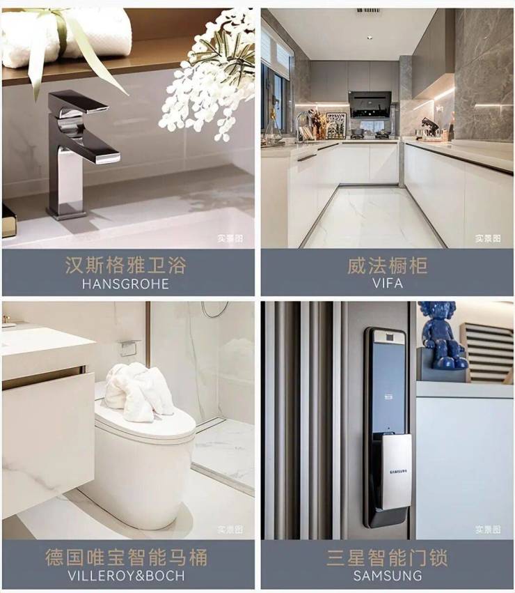 定制全屋智能精装,甄选国际一线品牌,如大金空调、松下新风系统、三星智能门锁、西门子厨电、杜拉维特洁具、威法橱柜,以及欧洲皇室御用卫浴品牌唯宝、德国百年奢侈卫浴品牌汉斯格雅、德国百年门窗五金品牌格屋等,精选其最新款作为标配,以珠江新城千万级豪宅标准,营造高端品质生活方式