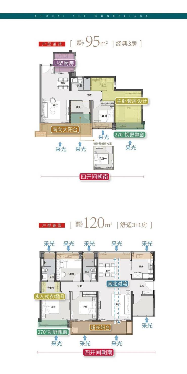 高层户型(建面约 95-140㎡全南向三 / 四房)