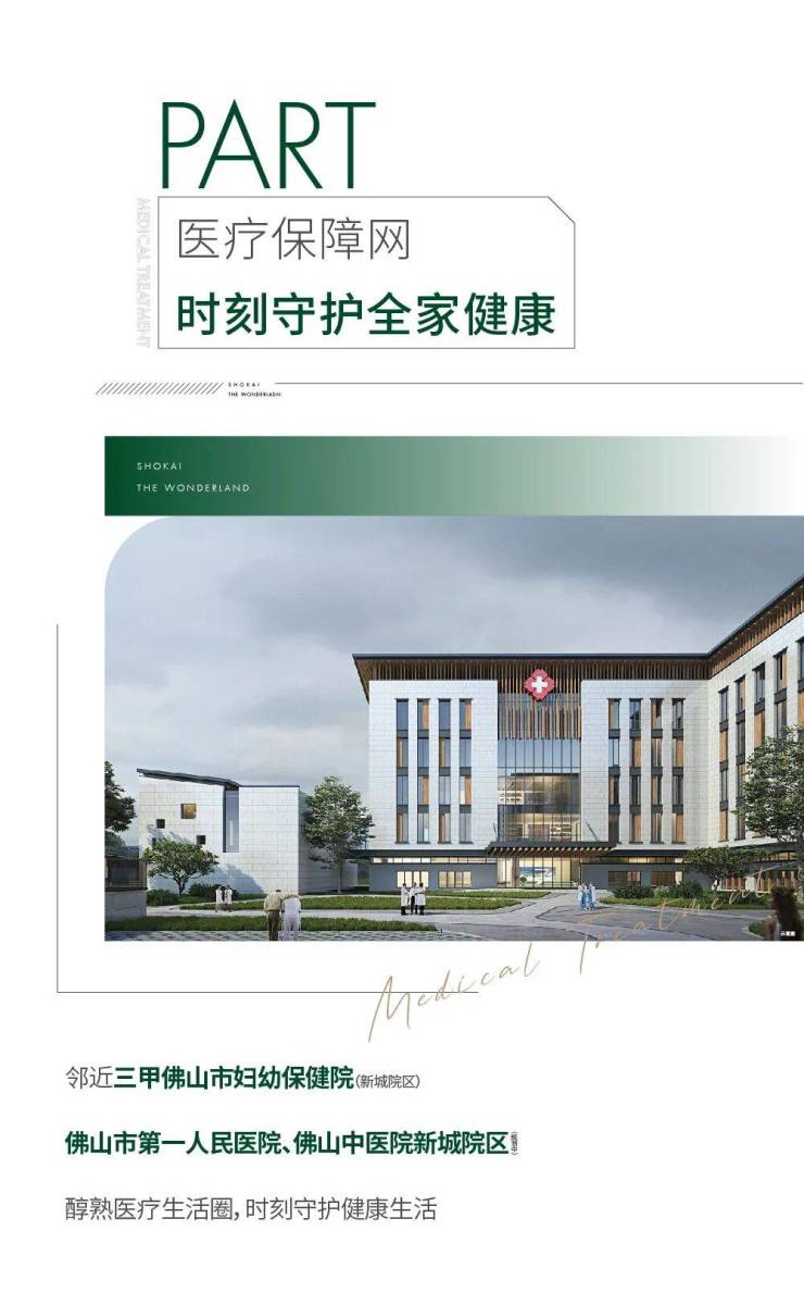 项目周边医疗资源丰富,汇聚多家三甲医院与优质医疗机构,为业主健康保驾护航 [11][14]。佛山市妇幼保健院新城院区、佛山市中医院新城院区均在项目 2 公里范围内,两所医院均为三甲级医院,医疗设备先进,医疗团队专业,可提供全方位的医疗服务 [11][14]。同时,项目周边还有多家社区医院与诊所,满足日常小病诊疗与健康体检需求,构建 “15 分钟健康医疗圈”[12]。