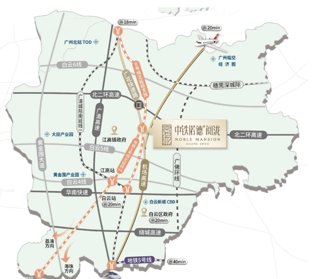 中铁诺德·阅泷的最大卖点在于其优越的交通条件。家楼下即有双地铁——8号线北延段和北延段支线【江府站】,预计未来坐地铁6站可达珠江新城CBD,10站直达北京路商圈,直达广州市政府。此外,广花快速路双向十车道无红绿灯设计,使得从项目出发仅需10分钟即可到达白云新城,3分钟上环城高速,30分钟抵达珠江新城,2小时覆盖大湾区各大城市,极大提升了出行便利性。