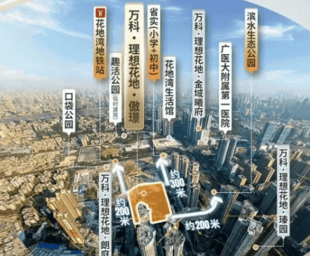 万科·理想花地·傲璟位于广州市荔湾区的花地湾板块,是万科在该区域开发的第四期项目。该项目不仅是早期理想花地朗庭的二期,还因其优越的地理位置和丰富的配套设施受到了广泛关注。项目距离地铁1号线花地湾站仅500米左右,步行约7分钟即可到达,且靠近省实学校,提供了便捷的生活和教育条件。
