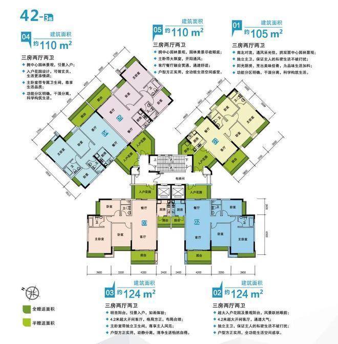主力户型:建面约106/110/124㎡三至四房