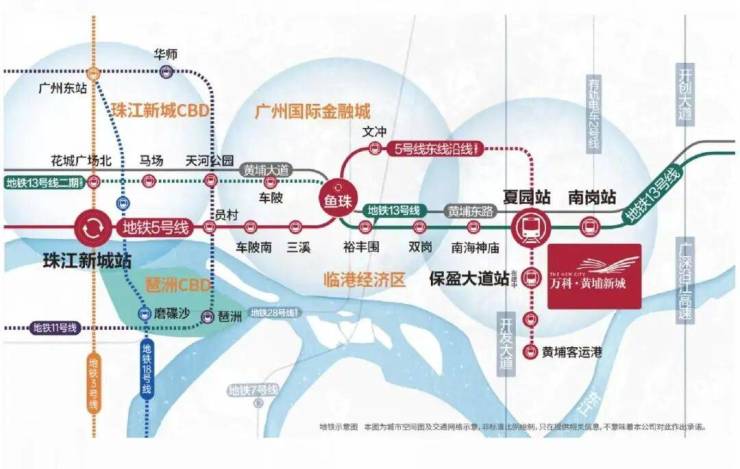地铁:项目距地铁13号线夏园站约850米,步行10分钟可达;距地铁5号线保盈大道站(在建)约500米,未来双地铁交汇,4站直达鱼珠CBD,7站抵达天河三溪站,13站通达珠江新城。