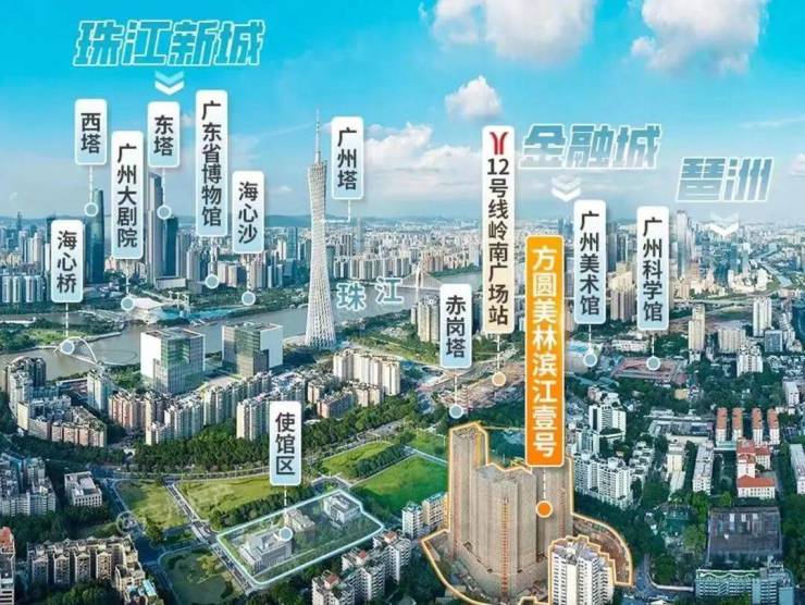 在寸土寸金的广州主城核心区,真正能同时坐拥“珠江+广州塔+双地铁+世界级商圈”的住宅项目,屈指可数。而方圆·美林·滨江壹号,正是这样一个集城市封面资源于一身的稀缺资产——它不仅位于广州新中轴南拓的桥头堡,更以约700米直线距离直面“小蛮腰”,北向高层推窗即揽珠江新城天际线与广州塔璀璨夜景。