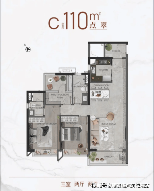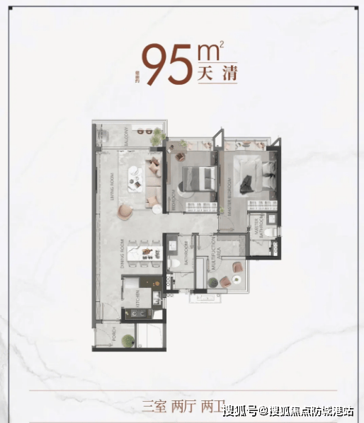 项目主力在售户型以刚需及刚改户型为主,户型布局合理,南北通透,采光通风俱佳,能够为业主提供舒适的居住体验。其中,刚需户型面积涵盖85-105㎡,设计为两房、三房,户型紧凑,功能齐全,客厅、餐厅、阳台相连,空间利用率高,既能满足日常居住需求,又能控制购房成本,适合单身贵族、小两口或三口之家置业。