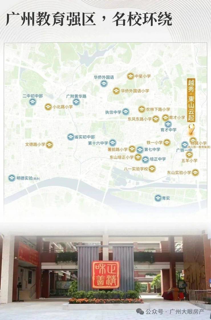 6,教育资源优质,对口杨箕小学,已纳入广铁一中教育集团管理。根据2024年越秀招生划分地块,初中包括广州七中、省实中学、铁一中学等强校。