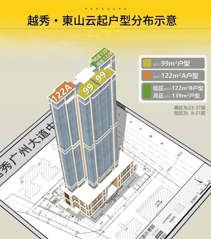 项目的整体设计理念注重私密性、舒适性和功能性,低户数配置结合1:1.17的车位比,兼顾居住便利性与城市核心区稀缺停车资源。住宅楼层共37层,部分高层可俯瞰城市景观,打造都市居住的新高度。越秀·東山云起在户型设计、建筑品质与生活便利上均表现出高端改善住宅的典型特征,充分满足都市家庭对品质人居的多重需求。