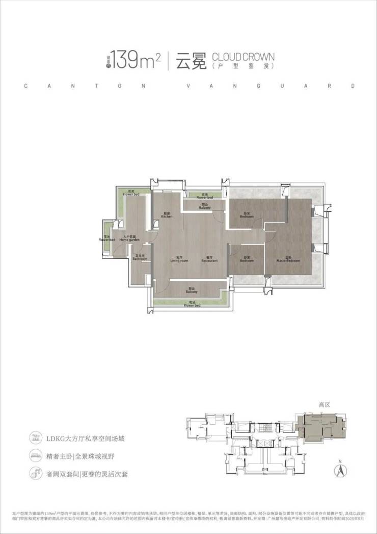 越秀·東山云起是位于广州核心城区的高端改善型住宅项目,主打建面约99-139㎡的新规产品,涵盖紧凑三房至宽阔四房户型,既适合首次改善型家庭,也满足城市中高端客户群的居住需求。项目总户数约116套,采用新规设计理念,强调舒适度与高实用率,住宅层高约3.1米,提供宽敞明亮的室内空间体验。