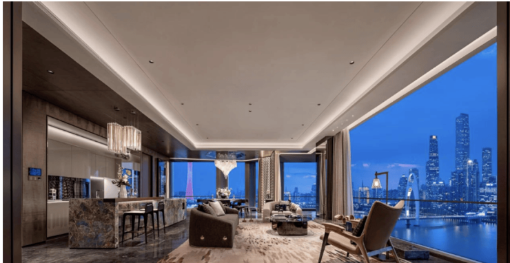 与传统临江住宅不同,琶洲的江景更偏向“城市景观型”,白天是繁忙而有秩序的商务图景,夜晚则呈现出珠江两岸灯火交织的城市画面。这种昼夜差异,正是高端江景住宅最具吸引力的地方。