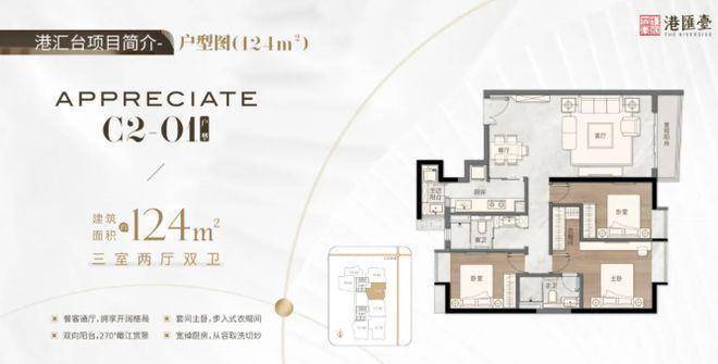 124㎡三房两厅两卫:餐客通厅,营造出开阔的格局。套间主卧配备步入式衣帽间,彰显尊贵与舒适。双向阳台设计,可 270 度瞰江赏景,享受极致的景观体验。宽绰的厨房,从容取洗切炒,为烹饪提供便利。