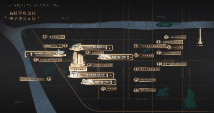 小学:根据招生公告,项目对口的昌岗中路小学是省一级学校,直升广州市五中附属初级中学。