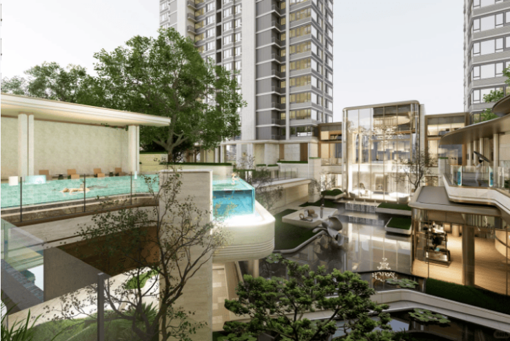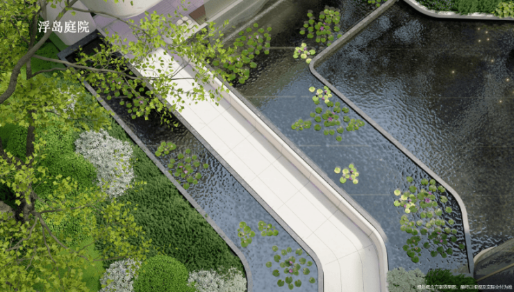 越秀·鸿璟台打造“内外双园”生态体系,外部拥享城市生态配套,内部规划低密立体园林,构筑高负氧离子的多氧居住空间,实现生态与居住的完美融合。外部生态层面,项目周边规划口袋公园,配置休闲座椅、儿童游乐设施,既是老人遛弯休闲、邻里社交的好去处,又为社区增添自然绿意与烟火温情,实现家门口的生态休闲体验。内部园林层面,项目以2.6超低容积率打造低密立体园林景观,融入岭南在地风情,采用“抬高式水系环绕”设计打造浮岛花园核心景观,营造悬浮于绿意之中的私密花园空间,兼具景观性与互动性。园林设计注重层次感与私密性,通过多重绿植造景、林荫步道、水景喷泉等元素,与城市喧嚣形成自然隔断,营造都会之上的隐奢生活逸境。从社区大门到单元门,打造酒店式入户与礼仪高亭,对称式景观布局搭配精致造景,归家之路即是穿越风景的仪式。社区内全龄化休闲空间规划,满足儿童嬉戏、青年运动、老年休闲等多元需求,让每一位业主都能尽享自然生态之美,在城芯繁华中独享静谧康养的居住氛围。