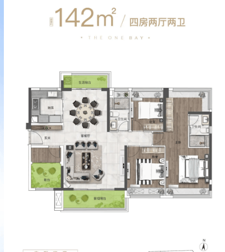 142㎡3+1 房:改善顶配,南北对流,四开间朝南,超大横厅 + 双阳台设计,部分高层可俯瞰德胜河全景,主卧套房带步入式衣帽间,全屋预留智能设备接口,适配追求品质生活的高端家庭。