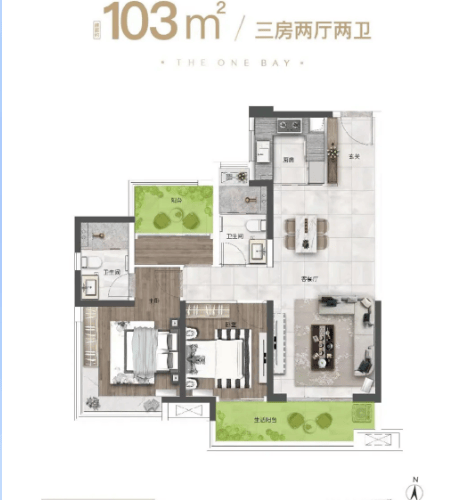 98-103㎡2+1 房:刚需入门首选,2+1 灵动空间可改儿童房或书房,全明通透,部分户型享滨江或园林景观,低总价即可上车德胜芯,适合年轻三口之家;