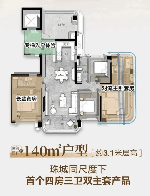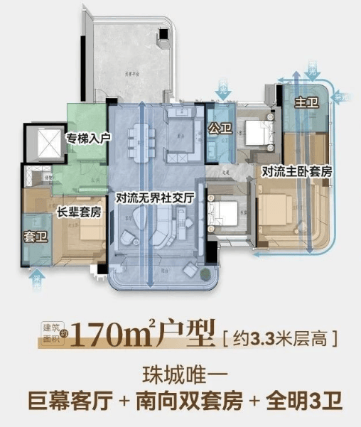 低密社区:容积率仅3.2,由12栋18-25层小高层组成,最大楼间距超80米,通风采光极佳。
