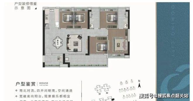 项目四期主推70㎡三房、88㎡四房、118㎡五房,所有户型均为全南向设计,搭配6-7米景观阳台,通风采光极佳。以88㎡四房为例: