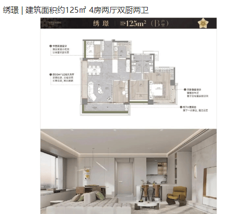 绣璟:建筑面积约125㎡,四房两厅双厨两卫。