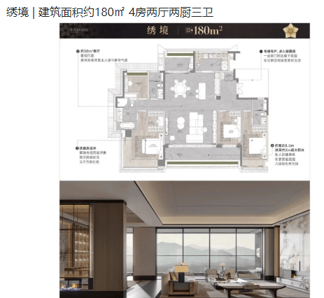 绣境:建筑面积约180㎡,四房两厅两厨三卫。