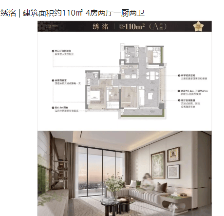 绣洺:建筑面积约110㎡,四房两厅一厨两卫。