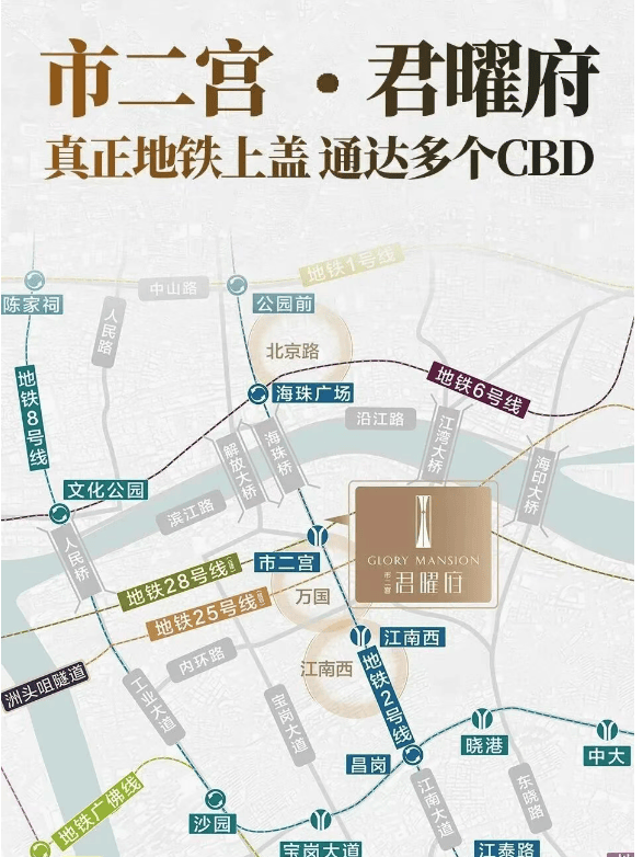 君曜府的价值,不仅在于当下,更在于未来。市二宫板块已被纳入海珠“滨江岭南文化商圈”与“文商旅融合示范区”规划,政府将投入资源活化历史街区、升级滨水空间、引入高端消费业态。同时,随着28号线2029年前后通车,区域轨道能级跃升,将进一步拉近与琶洲、金融城的时空距离。土地层面,海珠核心区已多年无新增住宅用地,君曜府作为“绝版供应”,稀缺性将持续放大。参考江南西、海珠广场二手房价(普遍7-9万/㎡),君曜府若定价合理(市场传闻约6.8-7.5万/㎡),具备较强倒挂优势。长远看,在“老城复兴+中轴南拓+滨江升级”三重政策红利下,其资产保值与居住价值有望同步兑现。对于看好广州核心区长期发展的买家,这或许是最后上车主城芯的机会。