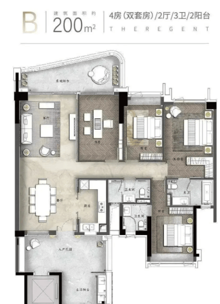 3. 产品力的高度迭代 在售的洋房和叠墅产品,均经过多轮市场调研与设计优化。洋房产品主打南向园景与实用空间,如建面约 140㎡的四房两厅三卫,三卧室朝南,双主套设计,独立电梯入户,完美契合三代同堂的改善需求。叠墅“珑岸”组团更是将别墅体验做到了极致,279-437㎡的超大空间,最高可达 345% 的实用率,私家电梯、超大花园、270°环幕江景,让每一位业主都能享受到媲美独栋别墅的尊贵生活。