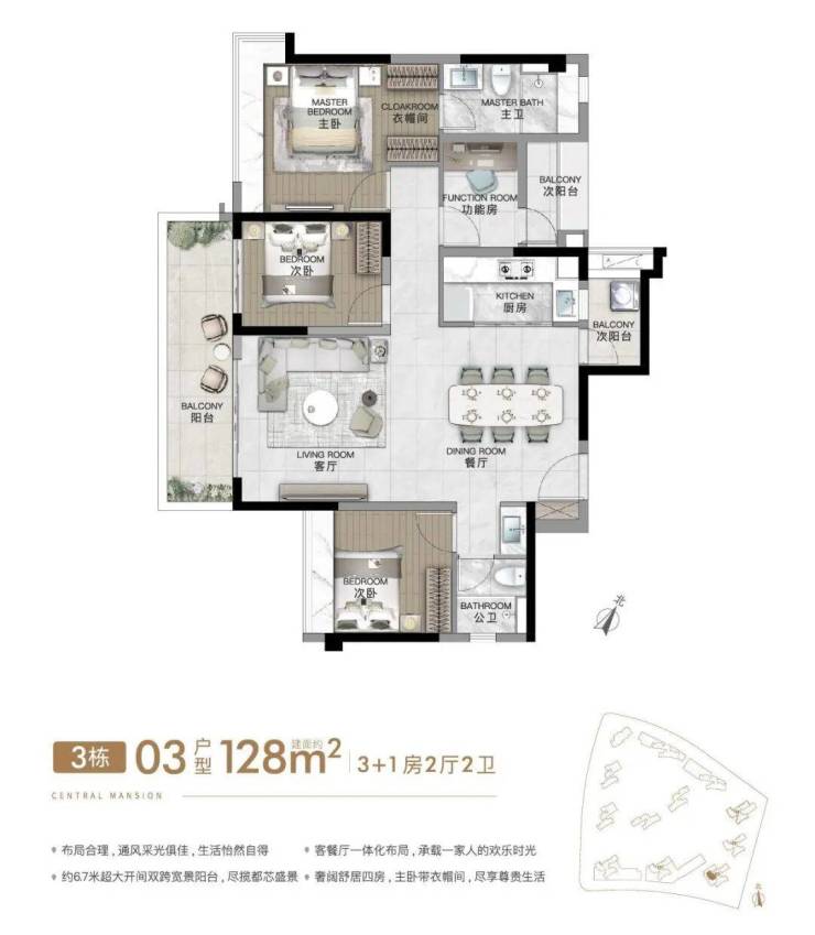 在户型设计方面,华润万博悦府充分考虑了不同客户的需求,推出了建筑面积约89 - 143平方米的三至四房户型。所有户型均采用了南北通透、动静分区的设计理念,保证了室内的通风和采光效果。同时,户型内部空间布局合理,功能分区明确,客厅、餐厅、厨房一体化设计,增加了空间的实用性和互动性;卧室采用了套房式设计,配备了独立的卫生间和衣帽间,为居民提供了更加私密、舒适的居住体验。