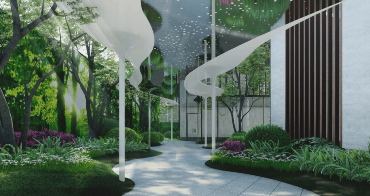 社区内的园林设计更是中旅天宸府的一大亮点。项目打造了“两轴·三院·四景”的现代东方园林,将传统文化与现代审美完美融合。虽然容积率达到了8.46,属于高密度住宅,但设计师通过巧妙的布局和垂直绿化,硬是做出了30%的绿化率,让居住环境多了一份舒适与宁静。走进小区,仿佛置身于一个精致的江南园林。曲径通幽的小路、错落有致的亭台楼阁、清澈见底的流水景观,无不透露着东方的韵味。四季更替,花木扶疏,春有百花秋有月,夏有凉风冬有雪,业主们在自家楼下就能欣赏到大自然的美景。
