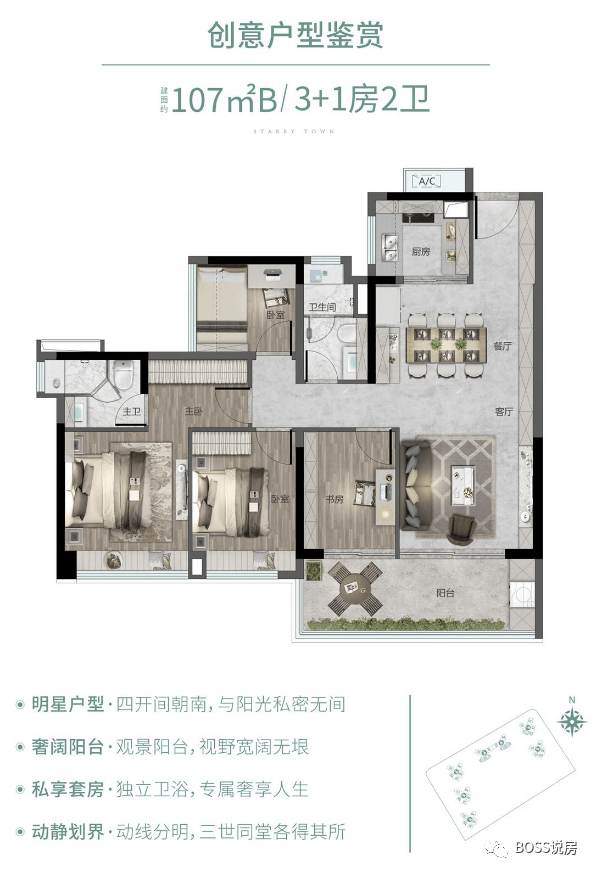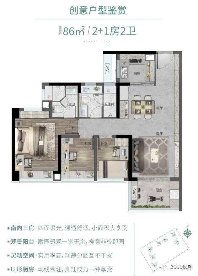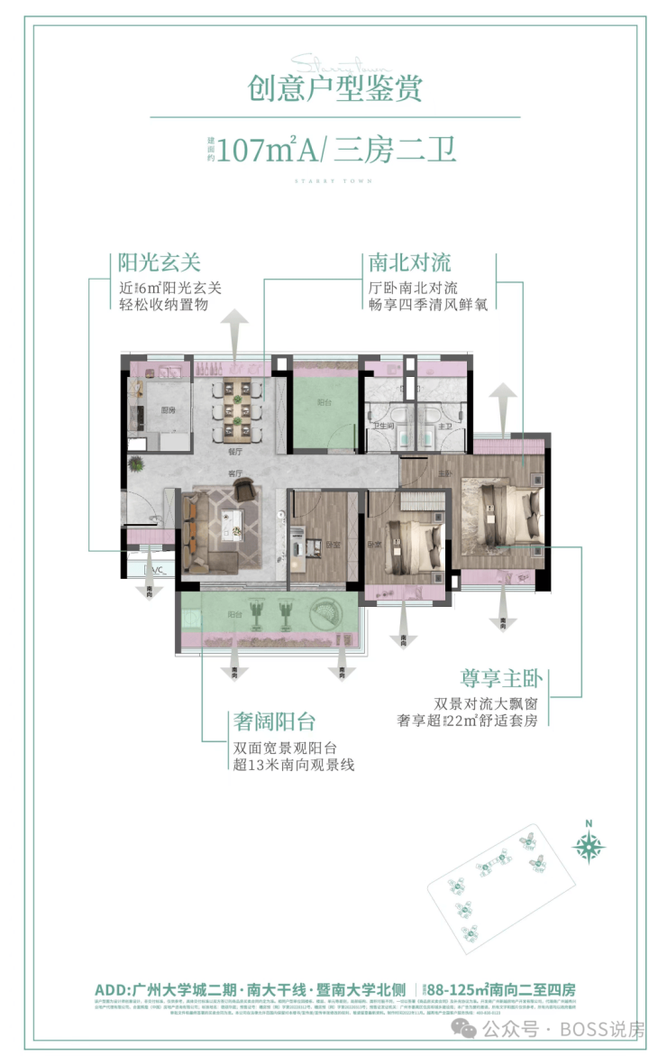 产品:全南向 86㎡/107㎡/125㎡三至五房