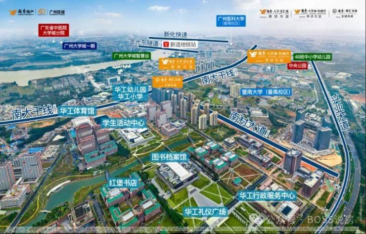 高等学府:项目毗邻华工暨大等高等学府,周边 12 所高校环绕,约 25 万师生聚集于此,学术氛围浓厚,有利于孩子从小受到熏陶