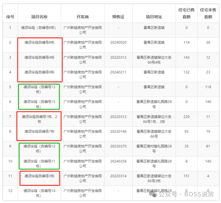 截止发稿,查询网签看出,现在一期(红色圈)剩余的货量已经不多了,加起来剩余100套多点,二期(绿色圈)12栋已经去化了1/3,11栋刚加推不久;