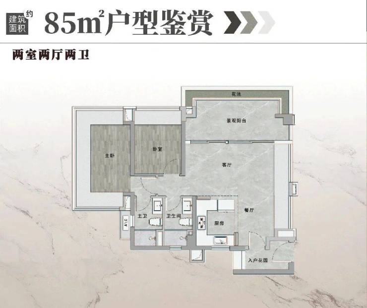 85㎡三房:赠送面积突出,相当于变相增加了房间数量,满足二胎家庭需求。
