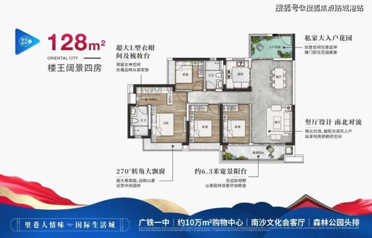 128平方米四房:四开间朝南,双阳台设计,主卧面积超20平方米,堪比豪宅体验。