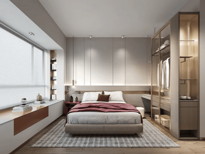 E户型建面约122㎡,为创意四房两厅两卫,是改善型家庭的优质选择。该户型空间尺度优越,南北通透,通风采光俱佳。宽景阳台设计,视野开阔,能够全方位欣赏社区园林与流溪河景观。主卧套房配备独立卫生间与衣帽间,彰显品质生活。次卧空间充足,可根据家庭需求改造成书房、儿童房等,灵活性强。