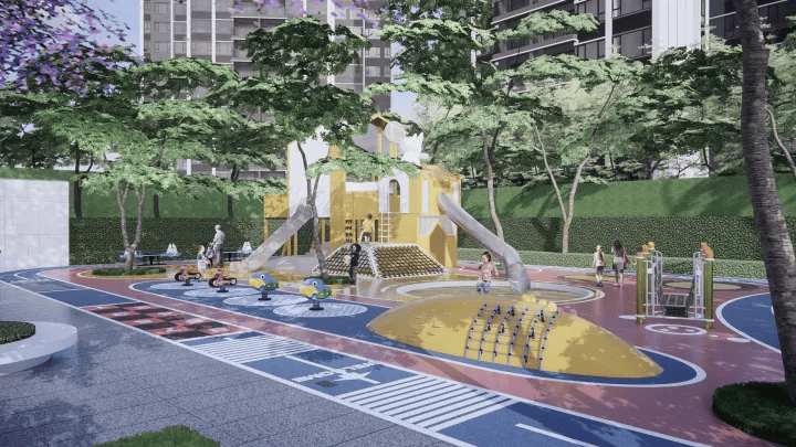 在社区配套方面,项目融合园景打造了乐活跑道,为业主提供便捷的健身场所;规划建设分龄双泳池,满足不同年龄段业主的游泳需求;还专门设置了乐兔游乐场,为孩子们打造了专属的快乐天地。此外,项目打造了归家三重景观礼序,以水相迎、林荫归家,让业主每次回家都能感受到满满的仪式感。社区园林采用“一轴三环七组团”的设计,种植了40多种名贵花木,实现移步异景,为业主提供了优美的居住环境。
