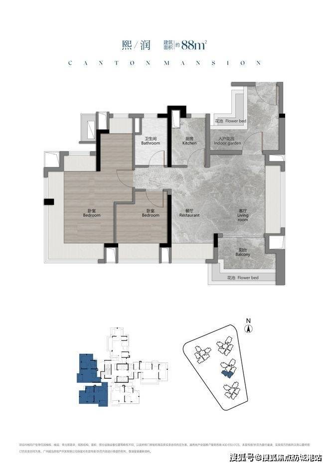 88㎡三房两卫:四开间朝南,主卧270°L型环幕飘窗,双面宽阳台(一侧家政空间,一侧休闲娱乐区),总价约460-540万元;