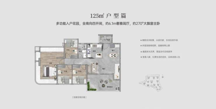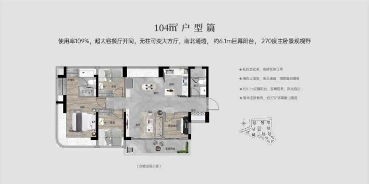 80㎡三房:12.6米南向面宽+270°弧形玻璃幕窗,小户型也有“景观总统套”视野!