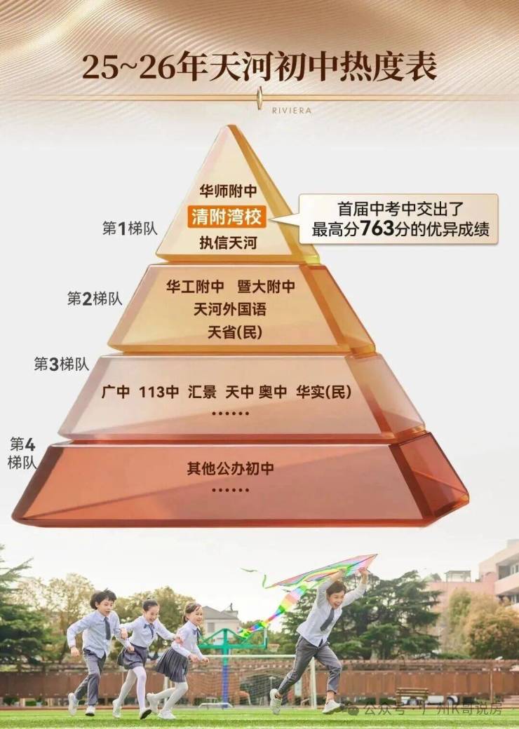 核心资源二:清华附中湾区学校。 这所由清华大学附属中学直接管理的公办学校,自落地广州便备受瞩目。学校涵盖小学、初中、高中,秉承清华附中的育人理念与管理模式,实力卓越。在首届中考中便取得了最高分763分的惊艳成绩。学校距离天河壹品约300米。根据天河区政策,该校在保障政策性照顾学生后,剩余学位面向广氮片区(包含天河壹品)等范围通过电脑派位方式招生。这为天河壹品的业主子女提供了入读这所顶尖名校的宝贵机会。