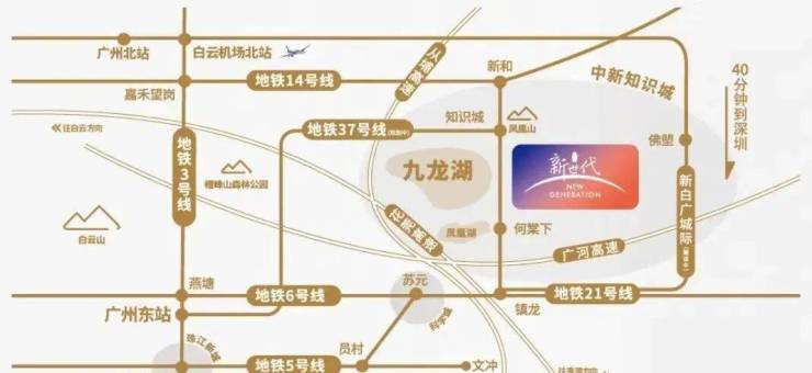 4、项目在地铁14号线知识城支线知识城站、何棠下站之间,4站接驳21号线,7站(快线)即可达天河。