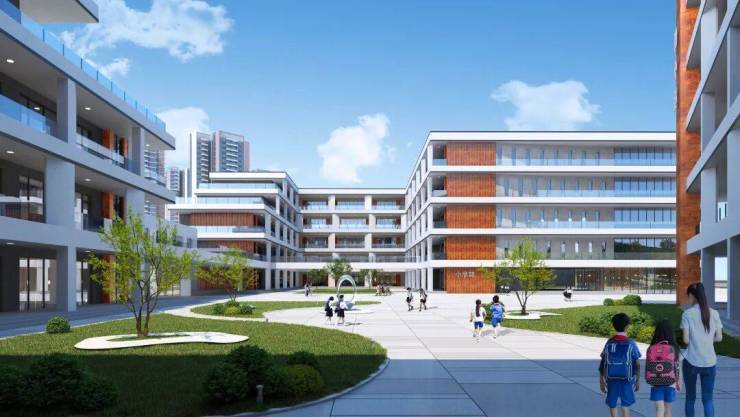 社区内自带18班幼儿园,54班九年一贯制公立中小学,小学建筑于2022年底封顶,中学主体将于近期封顶。