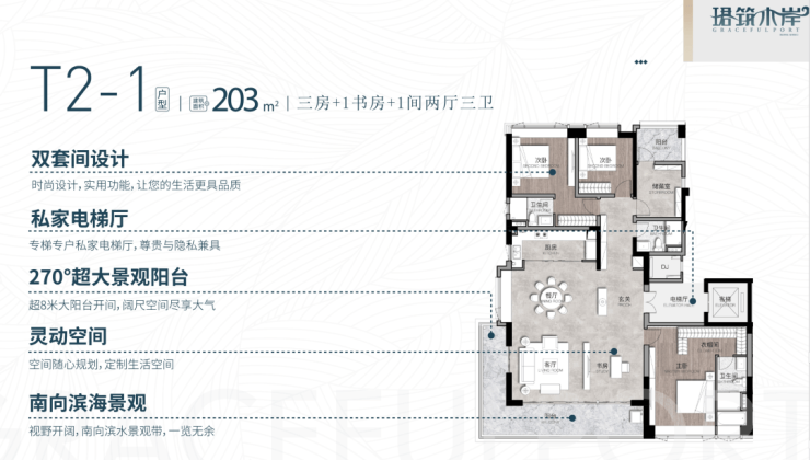 项目推出建面约 113 - 203㎡的三至四房平层舒适精装户型。113㎡户型设计为两房 + 1 书房两厅两卫,满足家庭多样化需求,空间布局合理,功能分区明确;134㎡的三房+1 室两厅两卫户型,空间宽敞,可满足家庭成员不同生活场景;146㎡三房 + 1 书房两厅两卫、156㎡四房两厅两卫、174㎡三房 + 1 书房两厅两卫以及 203㎡三房 + 1 书房 + 1 间两厅三卫户型,为追求高品质生活、需要更大居住空间的家庭提供了丰富选择,每一款户型都注重空间利用与居住舒适度的平衡。