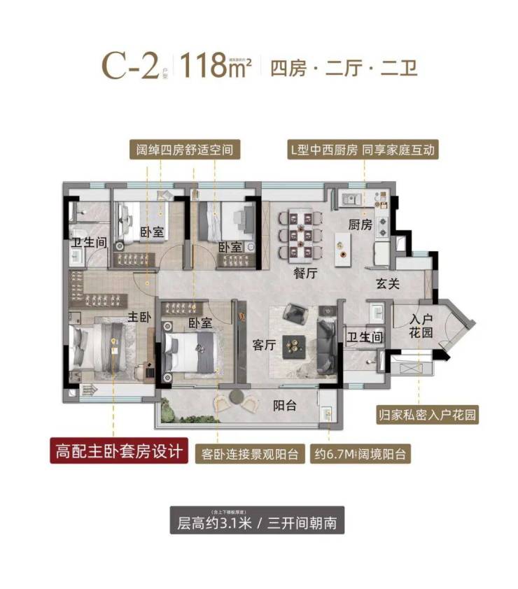 所有户型均采用LDK一体化设计,配备约3.1米层高和宽景阳台,采光通风极佳。高端装修标准,定制国际品牌六大精装系统,智能化及人性化兼备,外立面采用前沿“钻铂”设计,提升了整体品质感。