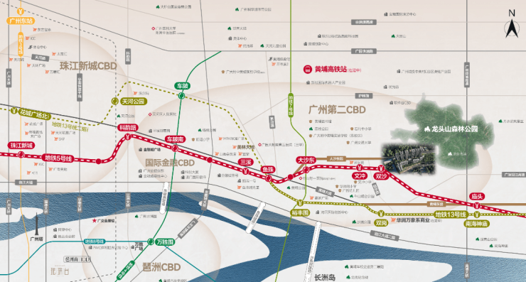 珑岄上城紧邻5号线双沙站,距离仅50米,一线直达珠江新城、金融城等地。从家门口到工位,最快30分钟即可完成通勤,无需换乘,大大提升了出行效率。此外,项目还自带公交车站和停车场,进一步完善了交通网络。