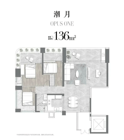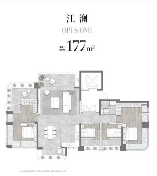 户型方面,项目推出建面约128-595㎡的多元产品,得房率超100%,是白鹅潭首个执行新规的江景住宅。大面积玻璃幕墙搭配浅灰与香槟金立面,既强化采光,又呼应珠江流动之美。所有住宅均享有开阔江景,真正实现“套套皆楼尊”。