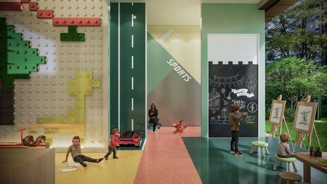 全架空层设计释放更多公共空间价值,社区在首层打造多功能共享场景,涵盖健身活动区、阅读空间、交流会客区及休闲娱乐区等,满足不同年龄层业主的日常需求。开放而有序的空间布局,使邻里互动更自然,也为家庭生活延展更多可能。1—12岁儿童主题游乐空间以“铁宝海洋历险记”为创意主线,将趣味性与安全性结合,构建沉浸式童趣天地,让孩子在社区中快乐成长。