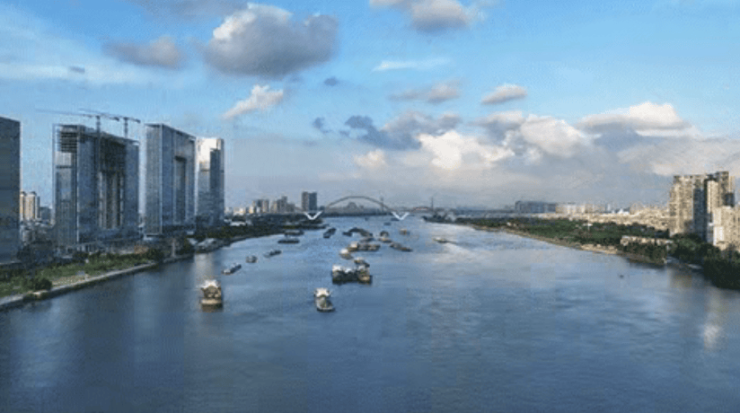 根据《广州市国土空间总体规划(2025-2035)》,海珠区定位为“国际消费中心城市核心区”,滨江东板块明确为“国际滨水商务区与高端居住带”。越秀江湾潮起占据珠江后航道核心段,直线距离珠江仅150-200米,是片区唯一南向一线临江住宅,270°环幕江景视野无遮挡。政府规划明确,项目前方300米内禁止新建高层建筑,江景资源永久性保障,稀缺性无可复制。