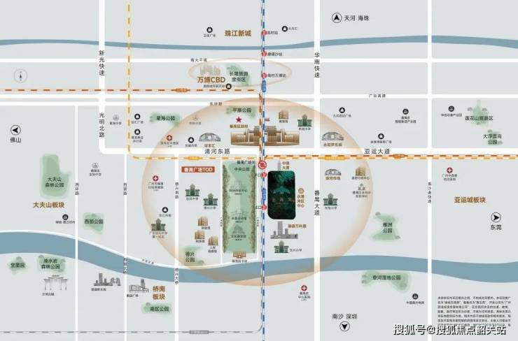 项目位于番禺万博CBD与长隆文旅城交汇处,直线距离: