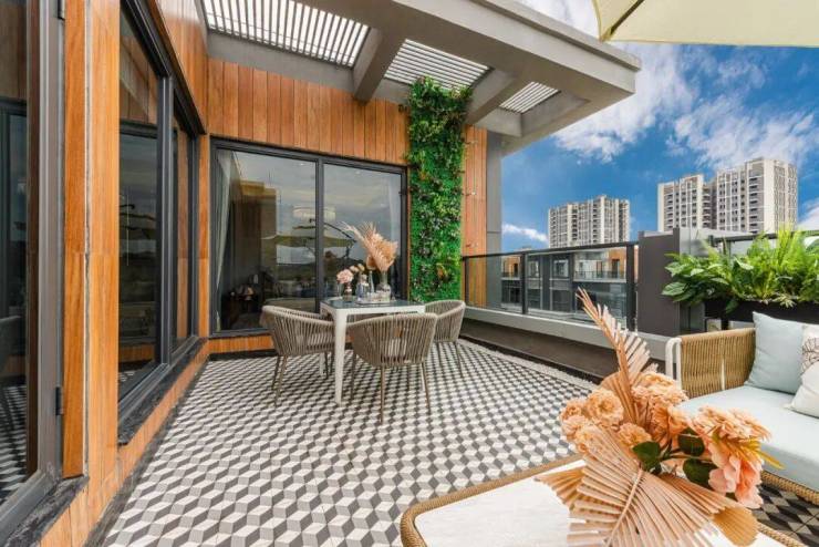 约6.7米开间超大景观阳台,让美景无限延伸,阳光穿过约1.4万㎡中央园林,栖息在家的每一个角落。