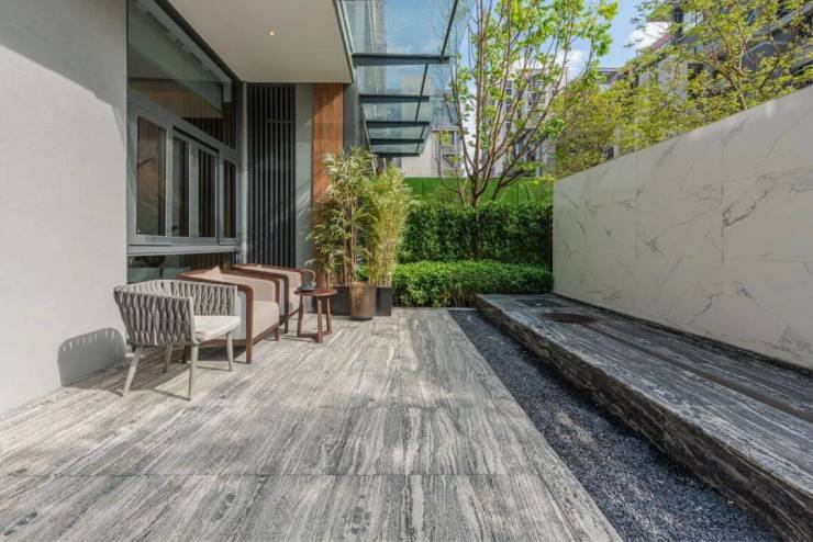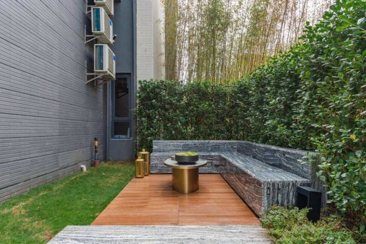 其中,下叠坐拥的是南向院子,中叠坐享北向花园,而上叠则不仅有入户庭院,还有超大露台。