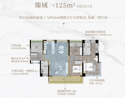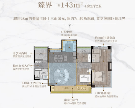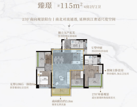 龙湖·御湖境提供多种户型选择,包括115㎡、125㎡、143㎡和190㎡的全四房设计,所有户型均采用方正格局,得房率接近100%,并配备国际品牌的装修,确保居住品质。特别是主卧配备了270°环幕观景窗,让业主能够享受无与伦比的江景视野。